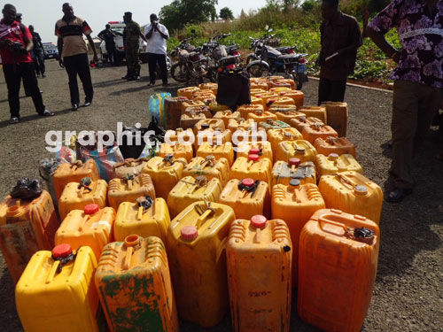 The driver of another vehicle, with registration number GW 697X ,Tanko Issahaku, was arrested, together with the station attendant, Frederick Boateng, at the Top Filling Station in Hohoe, with the vehicle filled with 18 jelly containers and two gallons.