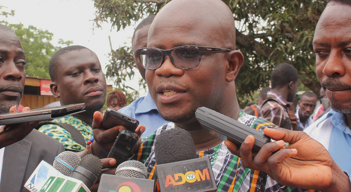 Dr Michael Kpessa-Whyte, Executive Director, National Service Scheme, exlaining a point to the press.