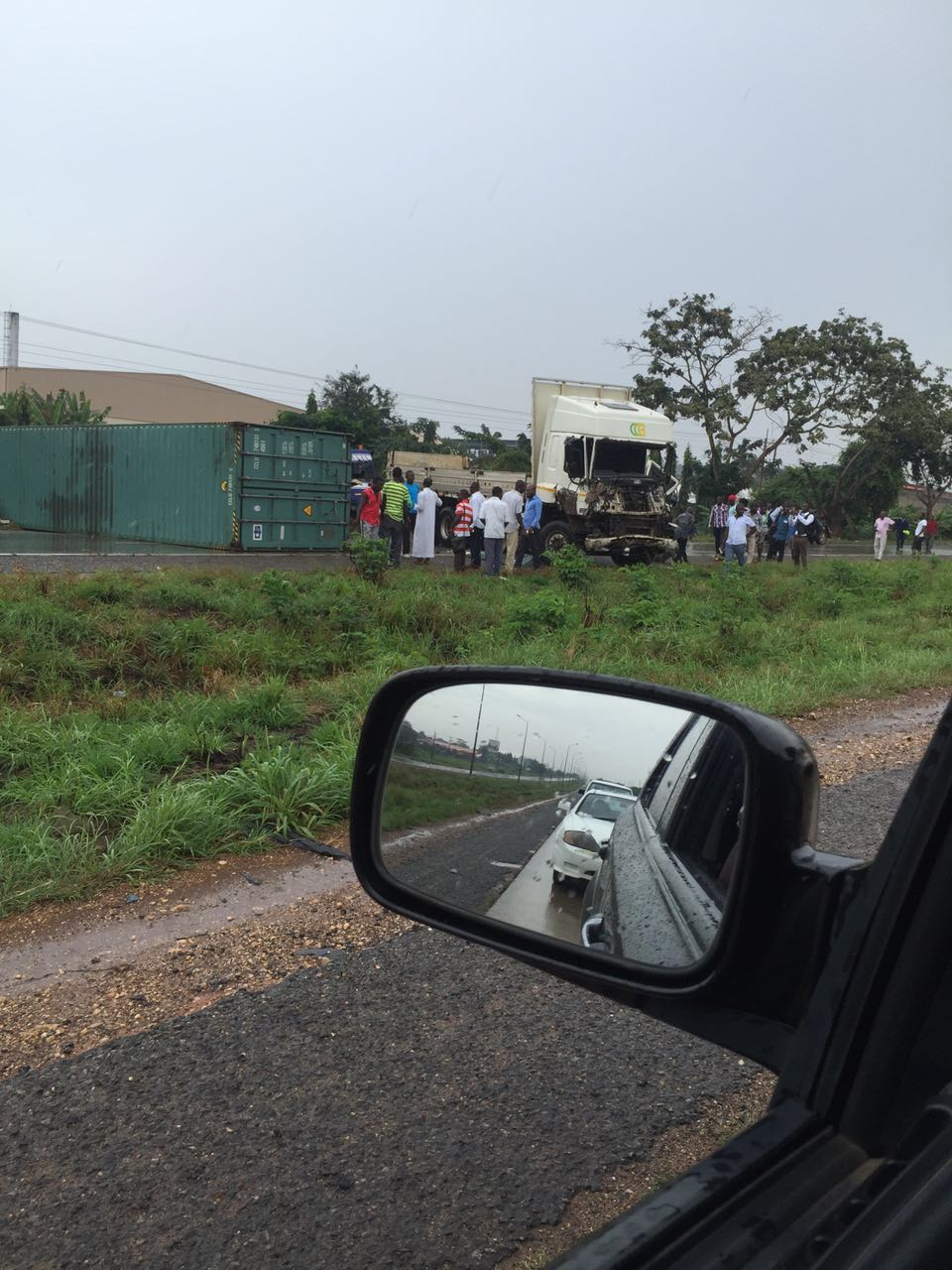An accident on the Tema-bound side of the Accra-Tema motorway on Tuesday afternoon left a trail of heavy traffic on the motorway as the accident vehicle blocked the road.