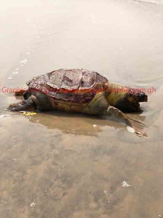 A heavy turtle was Tuesday found washed ashore at Kokrobite in the Greater Accra Region.