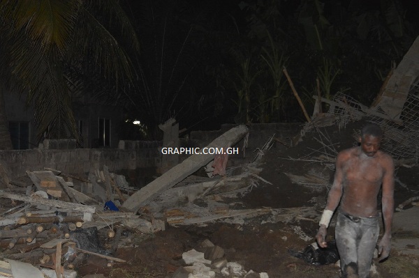 “Some of our colleagues who were under the structure immediately stopped work and left, but some of us continued to work till we heard the woman screaming that the building was coming down,” Yahaya told the Daily Graphic at the accident scene last Monday evening.