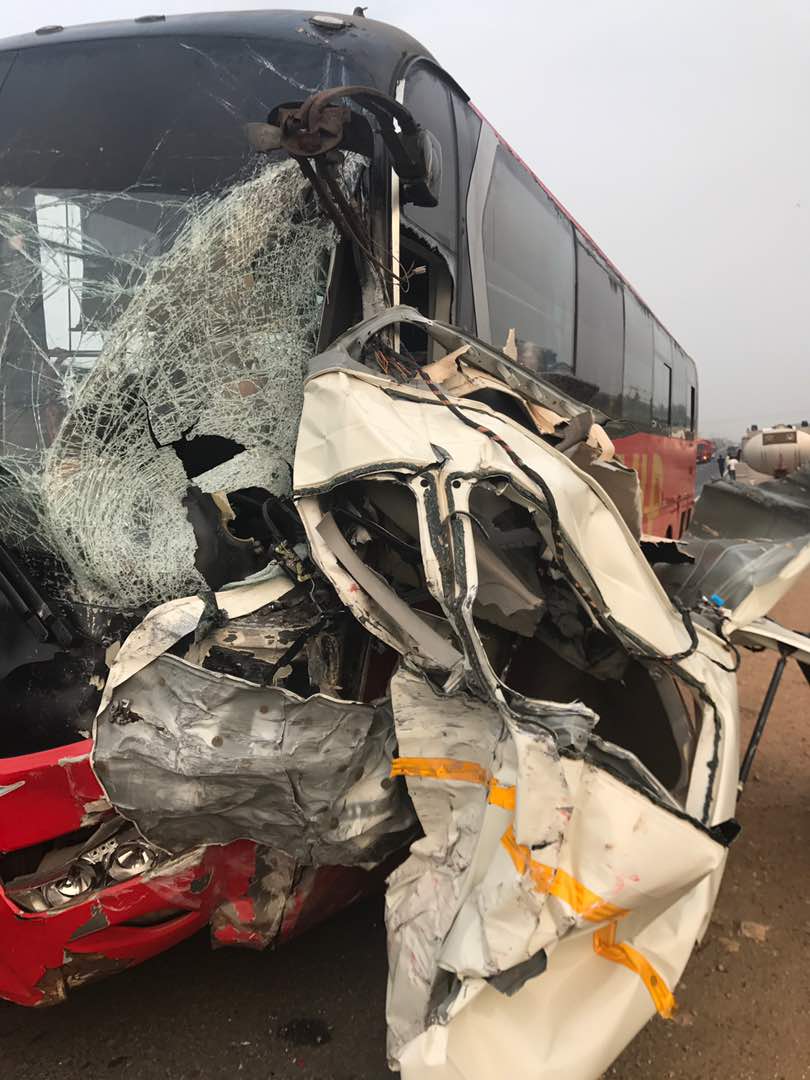 The Toyota Hiace was heading to Kumasi from Accra when it collided with the VVIP bus which was driving from Kumasi to Accra.