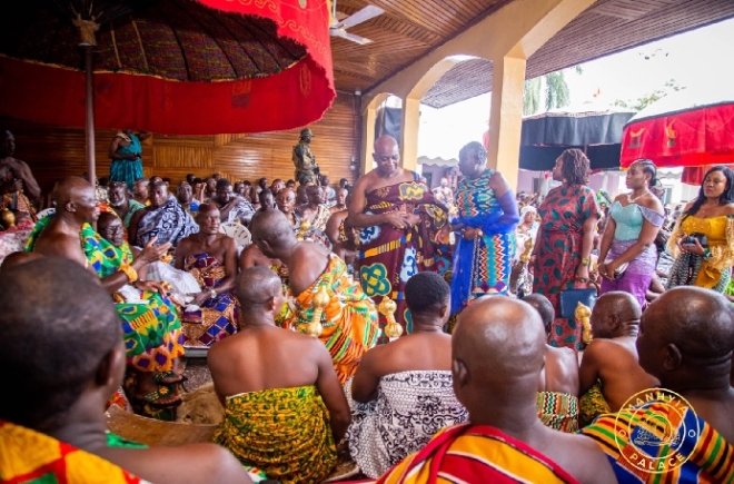 As tradition demands, the delegation also presented cash and drinks as gifts to the Asantehene and his entourage.