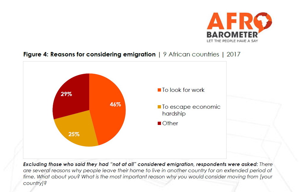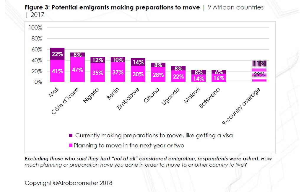About half of two groups that are critical to African countries’ economic future – the young and the highly educated – have considered emigrating in search of greener pastures, according to a new Afrobarometer video based on data from nine countries.