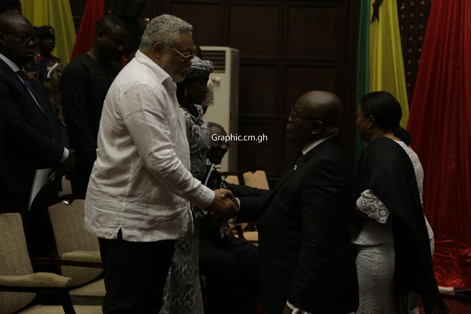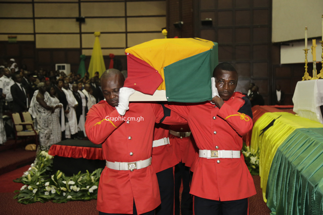 In attendance were President Nana Addo Dankwa Akufo-Addo, the First Lady, Mrs Rebecca Akufo-Addo; the Vice-President, Dr Mahamudu Bawumia; former Presidents Jerry John Rawlings and John Agyekum Kufuor; the Speaker of Parliament, Professor Aaron Mike Oquaye; the Chief Justice, Ms Justice Sophia Akuffo, and a former First Lady, Nana Konadu Agyeman Rawlings.