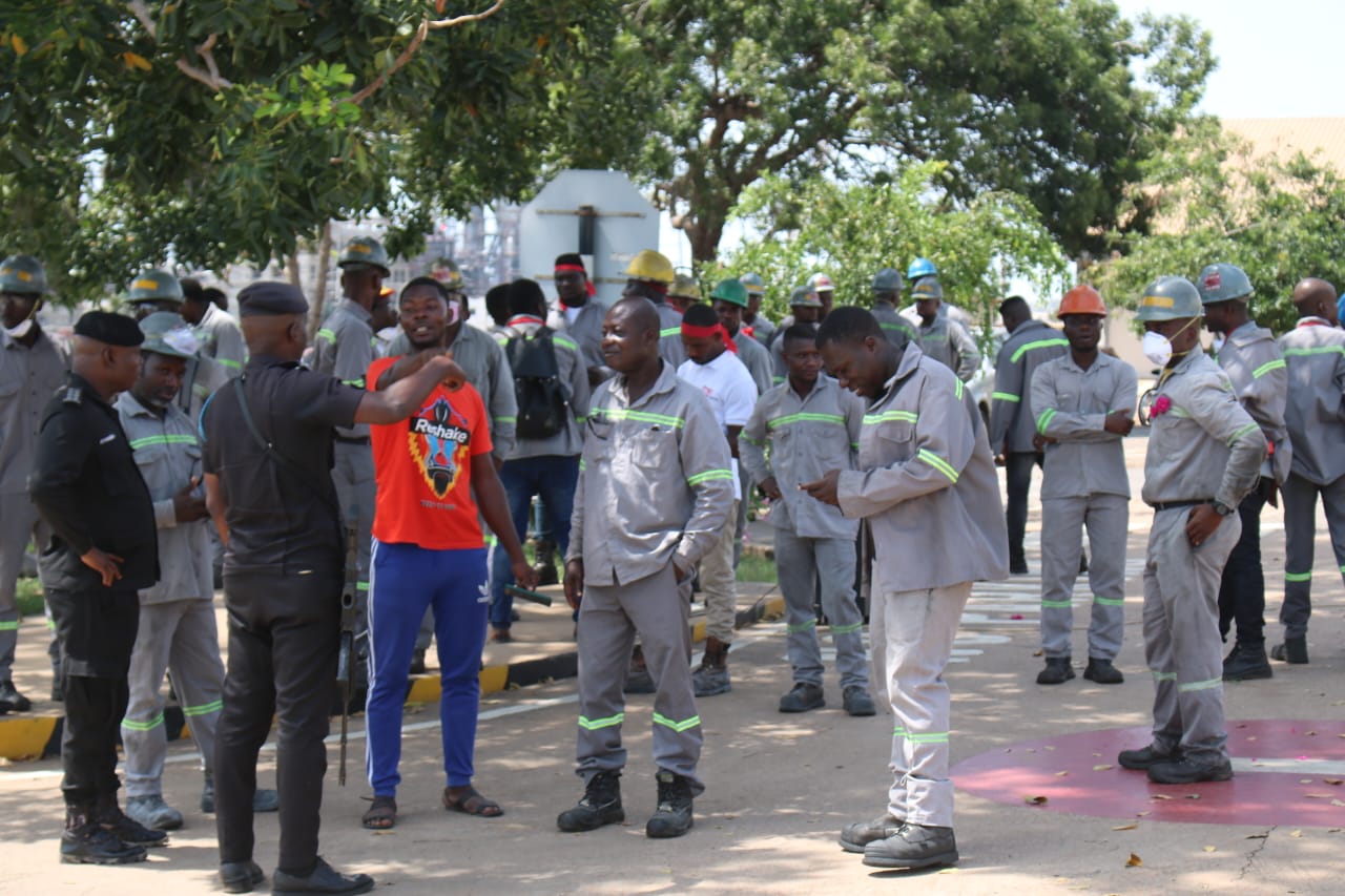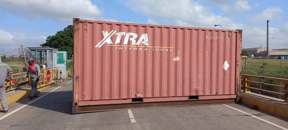 The protest at the frontage of the company was nearly marred by violence when a military deployment arrived to prevent the workers from blocking the access that links the company to Aluworks, using a 40-footer container.