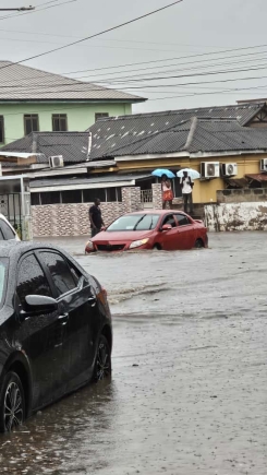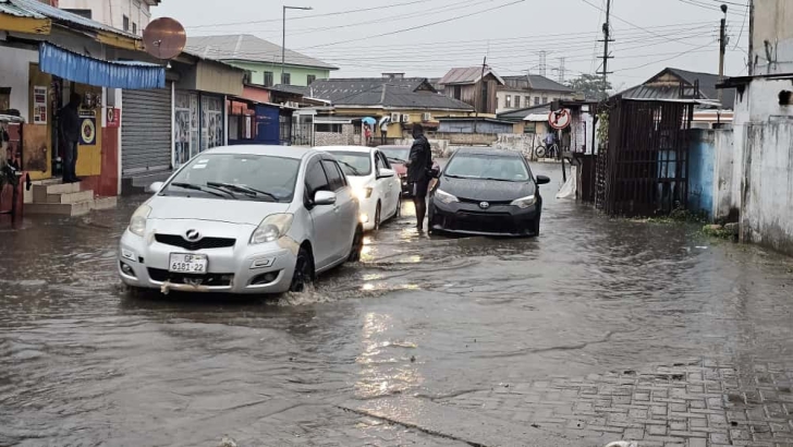 After less than 10 minutes of a downpour at Adabraka in Accra, this is how the Odawna area on the Official Street in front of the Presby Church looks like.