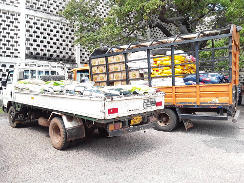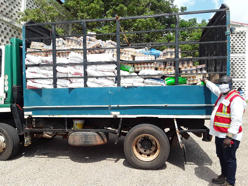 The items include 650 (25kilograms) bags of rice, 210 cartons of sugar, 260 cartons of mackerel canned fish and 1,260 three litre bottles of frytol cooking oil.