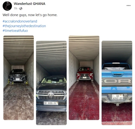 In a post on Facebook, the expeditionary group revealed that arrangements were in place for the vehicles to be shipped back to their origin in Ghana.
