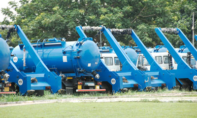 The equipment includes 25 skip trucks, 34 garbage compactor trucks, 30 mounted roll-on roll-off machine trucks, 10 suction and high pressure jetting trucks and 14 suction machine trucks.