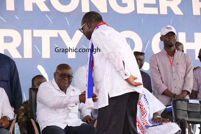 It was Dr Richard Amoako Baah who led in the handshake with the President after the chairman aspirants were introduced.