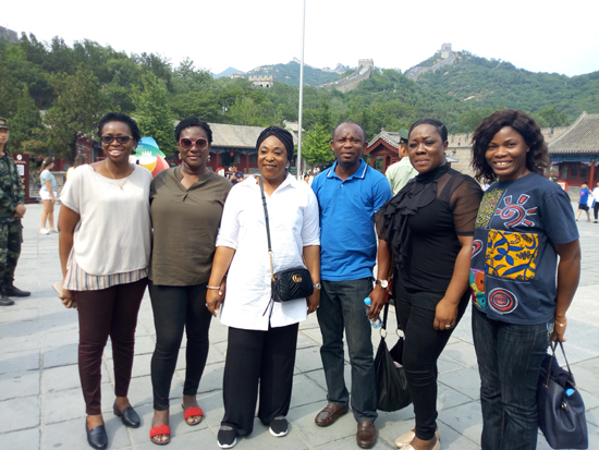 Ms Botchwey and officials of the Foreign Ministry at the Great Wall.
