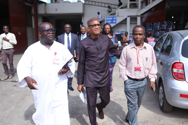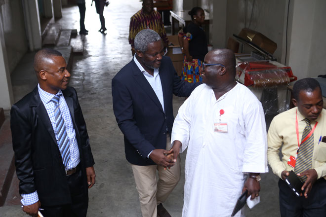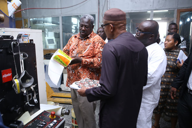 Mr James Dadzie, Director at Graphic Packaging (GPak) welcoming Mr Abdul-Hamid and his team to the GPak, a subsidiary of the Graphic Communications Group Limited (GCGL).