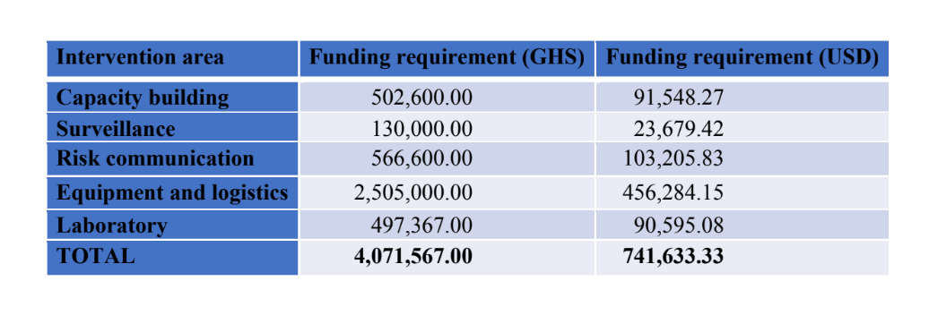 Corroborating the WHO's assessment, the Ghana Health Service (GHS) in its assessment report dated February 25 said "there are funding gaps and additional funding will be required to implement remaining activities at the national level, regions and districts".