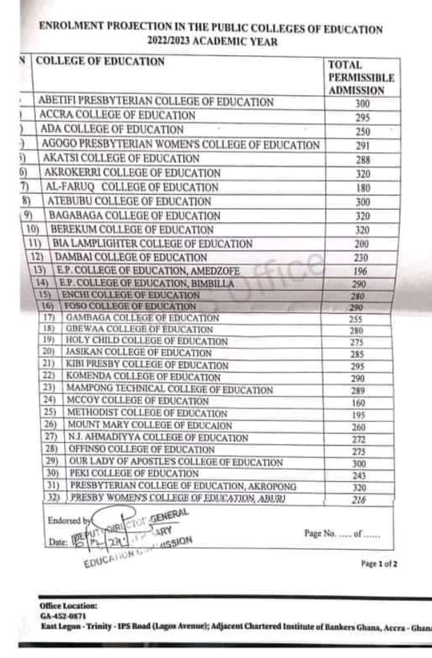 In a letter dated December 16, 2022, it was announced that the quota system for the 46 accredited Public Colleges of Education was being reintroduced for the 2022/2023 academic year.