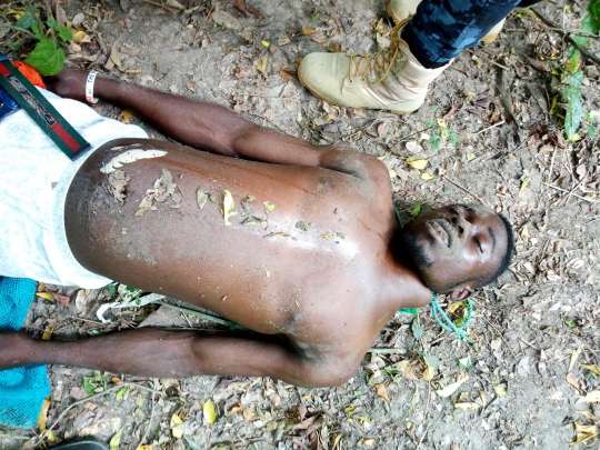 Chief Superintendent Adjirakor said he dispatched a team of policemen who went to the scene and found a man dressed in a blue jeans trouser with a white T-shirt and hanging on a branch of a tree.