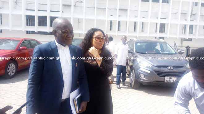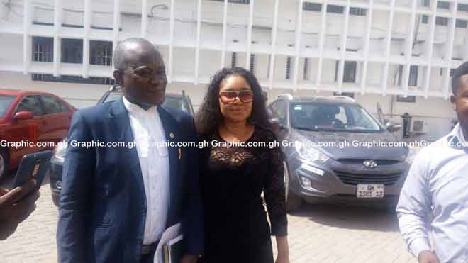 Picture shows Queenie Akuffo leaving the court with her lawyer after she was acquitted and discharged on Wednesday morning. PICTURES BY EMMANUEL EBO HAWKSON.