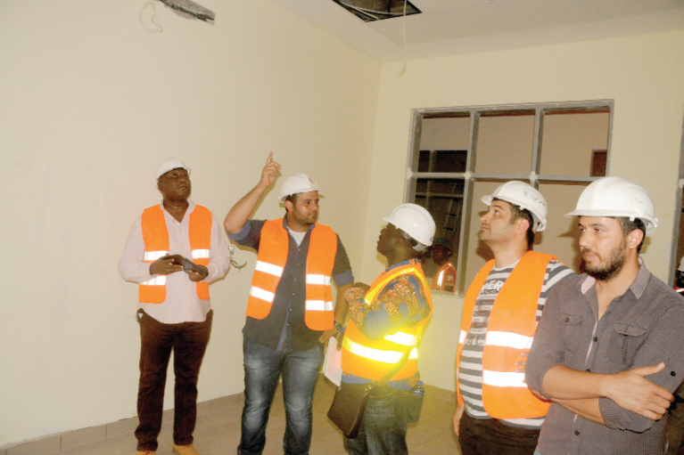 • Engineers at the Afari Hospital looking at works on the ceiling