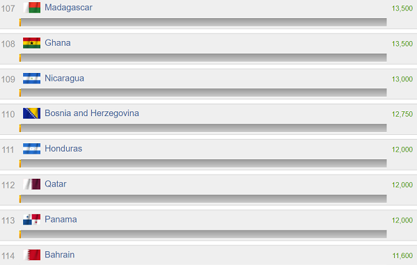The numbers available for each nation was calculated through an in-house formula which is used to establish the final ranking.