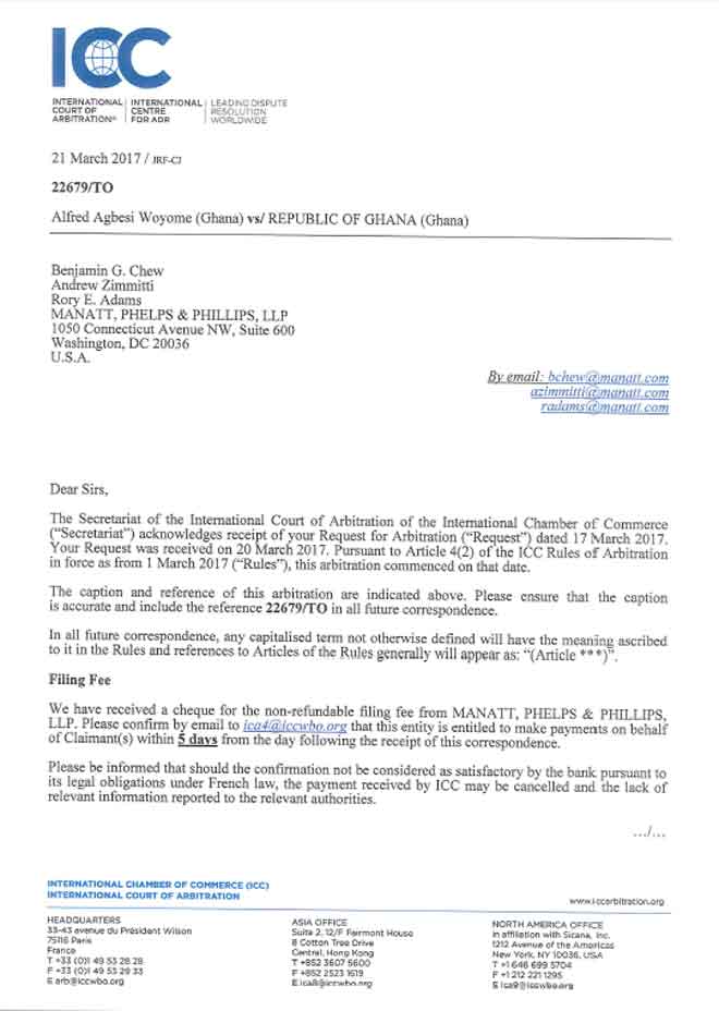 Businessman Alfred Agbesi Woyome has petitioned the International Court of Arbitration of the International Chamber of Commerce (ICC) over the GH¢51.2 million judgment debt paid to him by the past National Democratic Congress (NDC) government which the Supreme Court has ordered him to refund.