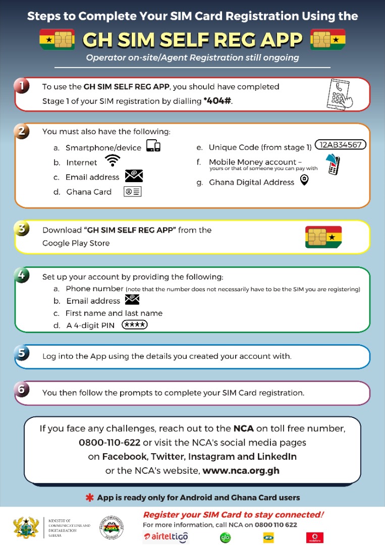The National Communications Authority (NCA) has released the SIM Card Registration Self-Service Application (App).