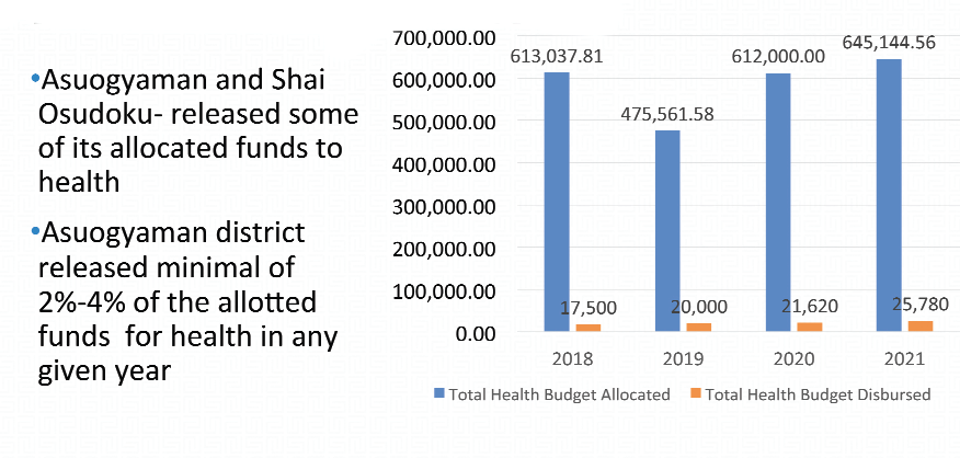 This is largely attributed to the delay in the release of funds from the national level to the district, which affects the level of support the district assemblies provide to their Health Management Teams (DHMTs).