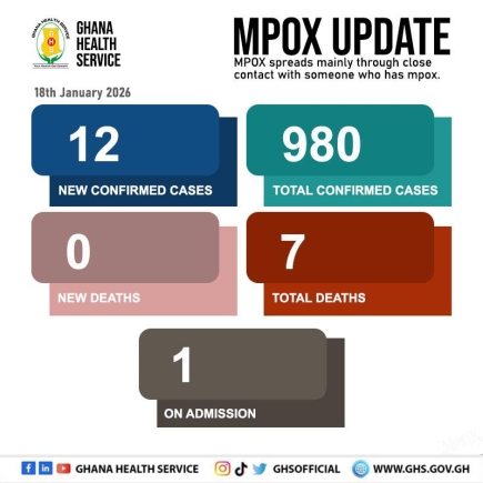 Ghana has recorded 12 new cases of Mpox as of January 18, bringing the total number of confirmed cases to 980, according to the Ghana Health Service (GHS).