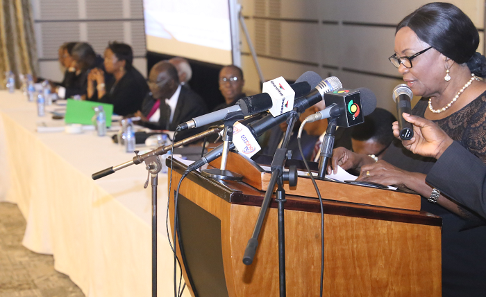 Mrs Justice Georgina Theodora Wood, Chief Justice, addressing the forum at the 9th Annual Chief Justice's Forum on the theme, "The Judiciary and Election 2016" in Accra. Picture: SAMUEL TEI ADANO