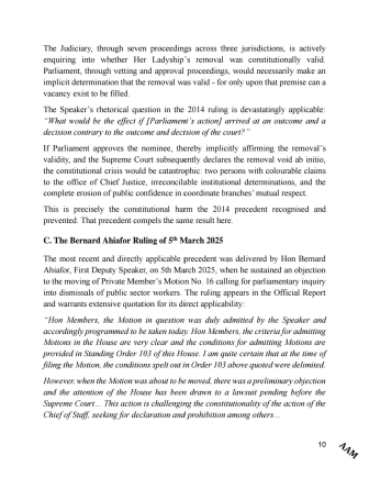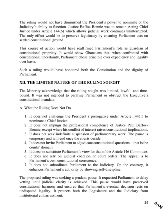 When he was given the opportunity to make a preliminary comment, the Minority Leader, Alexander Afenyo-Markin, described the acting Chief Justice as a “disputed nominee”, a term which the Majority Leader, Mahama Ayariga, objected to.