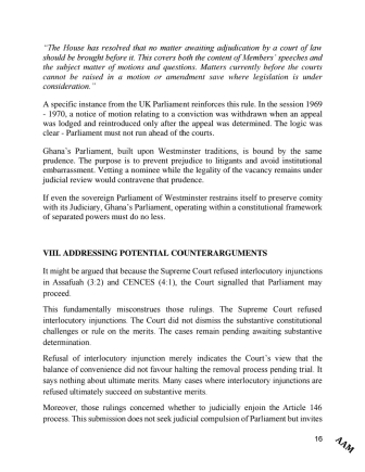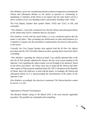 Mr Afenyo-Markin further stated that the issue raised in his preliminary comment was a political issue, and as such, the Minority needed to be given the opportunity to express same.
