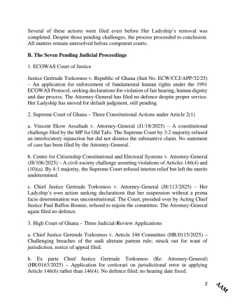 According to the Minority, multiple cases currently before the Supreme Court, High Court, and ECOWAS Court make it improper for Parliament to proceed with the consideration of a new Chief Justice. They argue that continuing the process undermines judicial independence and prejudges matters that are still under adjudication.