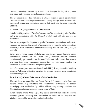 The Minority Caucus has since released a 26-page statement on the nomination and vetting
