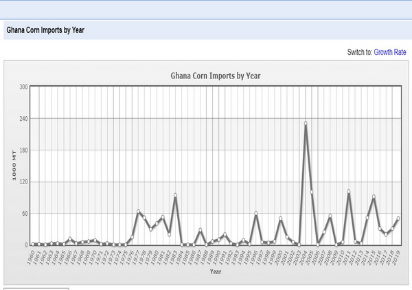 2. Why the astronomical increase in food imports? For example, annual importation of maize has increased from 31,000mt in 2016 to 50,000mt for 2019 according to the U.S Department of Agric (see Ghana's maize imports over the years.