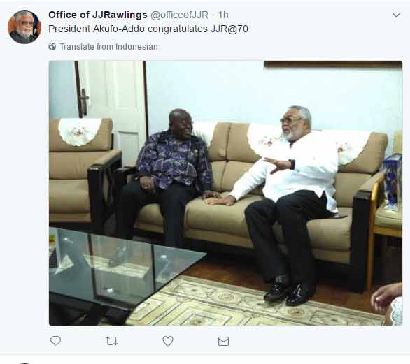 President Nana Addo Dankwa Akufo-Addo has congratulated former President Jerry John Rawlings on his 70th birthday.