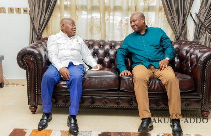 Former President Akufo-Addo shared the photos and video on social media with the cation, "on Sunday, 20th April, 2025, the President of the Republic, H. E. John Dramani Mahama and I met on the lush landscape of Kwahu where for nearly two decades, I have consecutively visited to mark the sacred period of Easter."