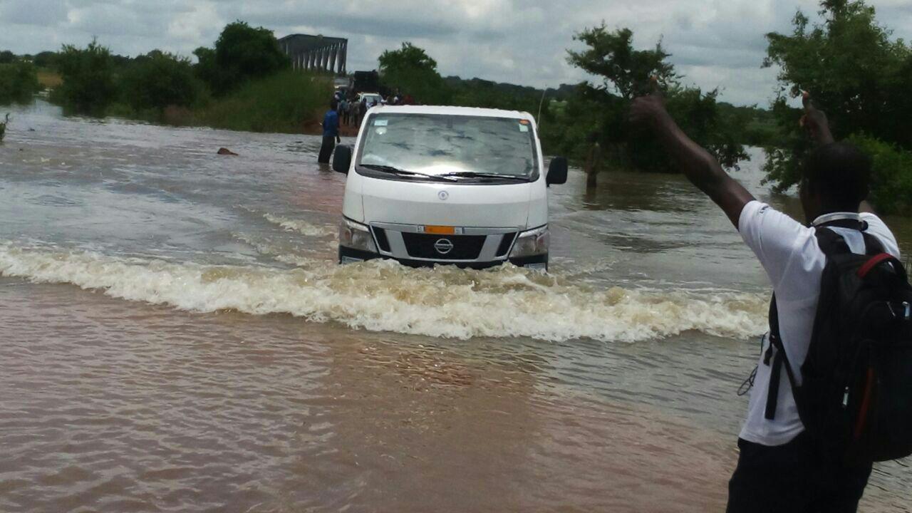 Some of the occupants in the vehicles in the convoy had to step down from their vehicles in order to push their vehicles through the running water that had covered some portions of the road.