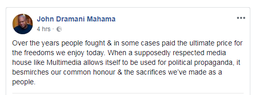 In an interview on Accra-based Starr FM, Mr Mahama’s Special Aide, Joyce Bawa Mogtari, said Mr Mahama is in consultation with his lawyers to decide on the action to take against Multimedia.