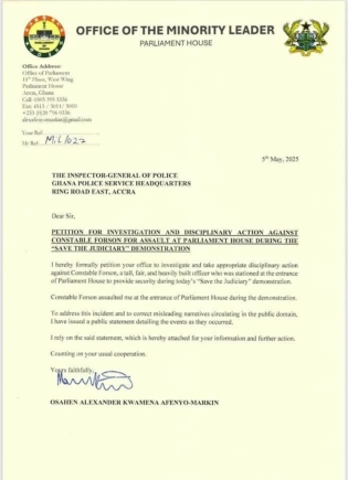 While the police in a statement issued Monday night [May 5, 2025] said it had extended an invitation to Mr Afenyo-Markin as part of investigations, Mr Afenyo-Markin on his part in a press statement indicated he has lodged a formal complaint and petitioned the Inspector General of Police to investigation and institute disciplinary action against the said policeman.