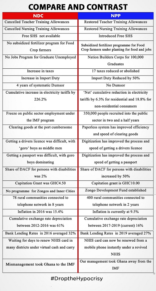Dr Bawumia in a post on his social media handles captioned #DroptheHypocrisy, noted how the NPP had restored the training allowances of teachers and nurses which the NDC had cancelled.