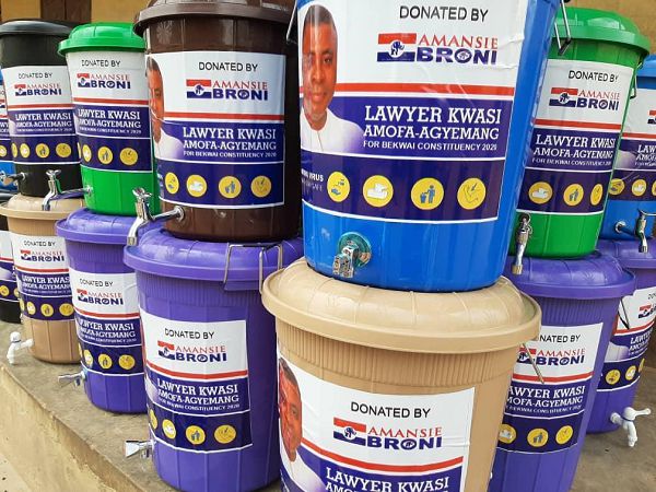 Lawyer Amofa donated 100 pieces of large Veronica Buckets, 200 pieces of hand washing liquid soap, 3,000 pieces of hand sanitizers, 50 pieces of washing bowls and 100 pieces of paper towels to aid constituents in the fight against coronavirus pandemic.
