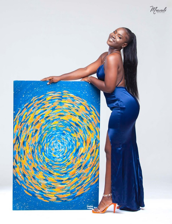 The prices of her art pieces range from GH¢15,555 to GH¢25,555. Asked why this unique way of pricing, she said “I hate zeros, so I don’t like to see them in my work”.