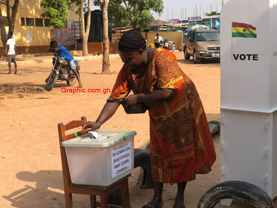 PHOTO: Voting at Nii Sowah Din polling station A, Nmai Dzorn at Ashale Botwe School junction in Adentan constituency in Greater Accra. PICTURE BY ENOCH DARFAH FRIMPONG