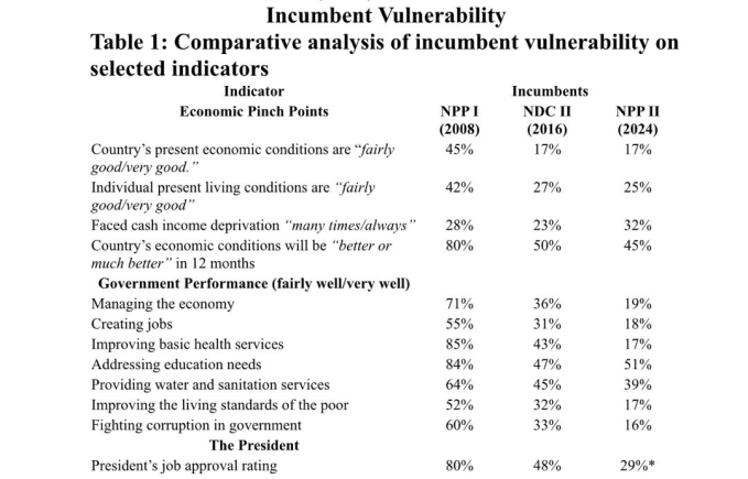 I do so to assess incumbent vulnerability as the NPP attempts to hold on to power. Data for the analysis is drawn from the Afrobarometer survey (2008 and 2024) and CDD-Ghana’s pre-election survey (July 2016).