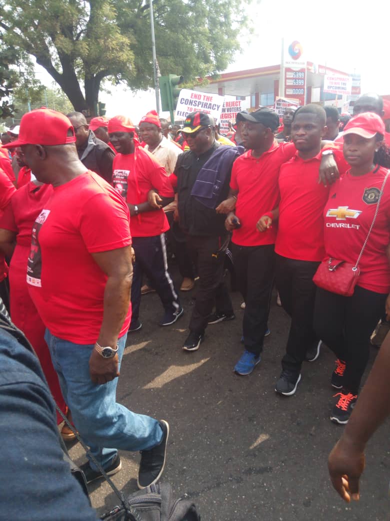 Members of the inter-party resistance against the Electoral Commission's plan to compile a new voters' register for the 2020 general elections poured onto the streets in Kumasi Tuesday morning in protest.