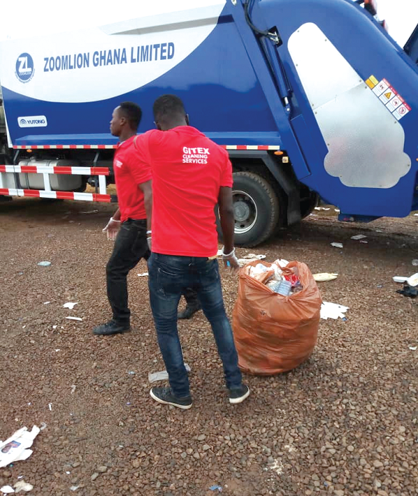 When the Daily Graphic visited the venue last Sunday morning, some service providers made up of Zoomlion Ghana Ltd, Gitex and Satisfactory Cleaning Services were clearing the filth.