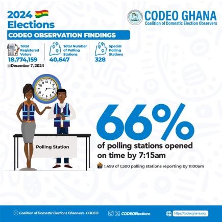 Polling stations in five regions delayed in opening the polls for voters to exercise their franchise, the Coalition of Domestic Election Observers (CODEO) has disclosed.