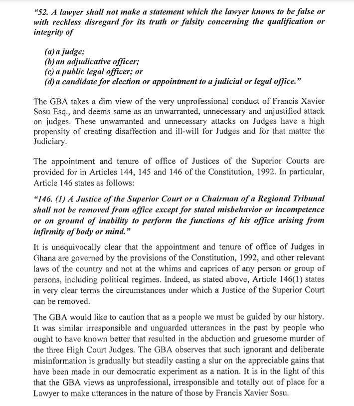 According to the GBA, the statement by Mr Sosu, a lawyer, is not only "unprofessional and unfortunate", but also "irresponsible and distasteful."