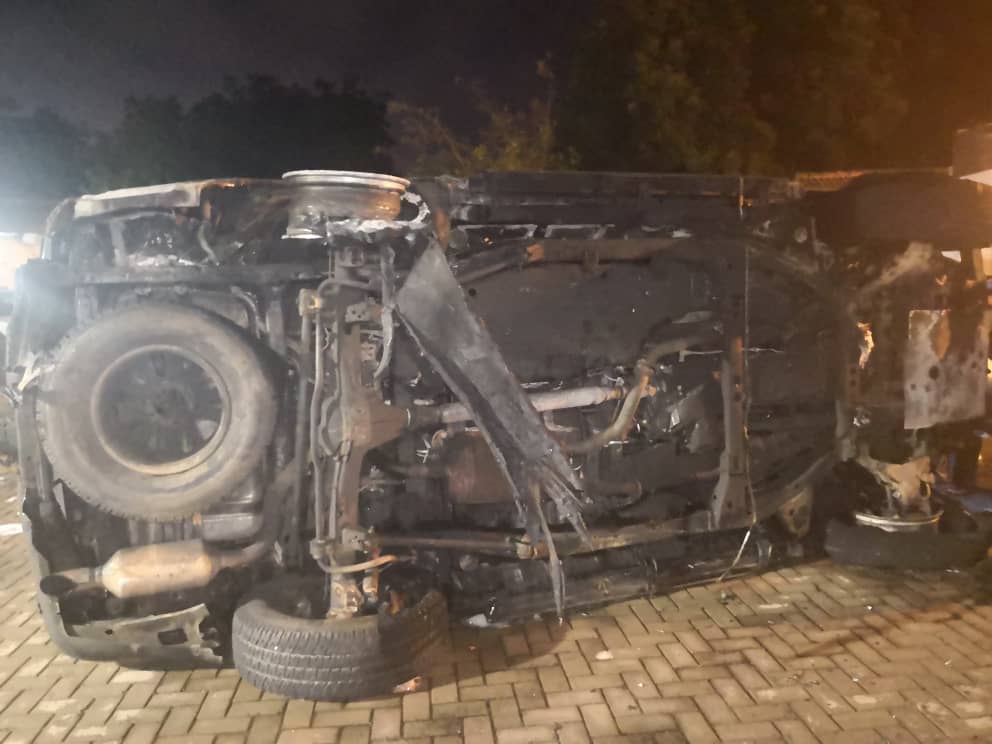 The vehicle, which had been reportedly parked for the past three days in the official residence of the Mayor at Ridge in Accra caught fire and burnt to ashes.