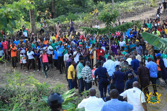 Earlier in the day, President Akufo-Addo cut the sod for the construction of the main campus of the Bibiani College of Health Sciences, made a brief stop at Ntrentrenso where he inspected a cocoa rehabilitation farm.