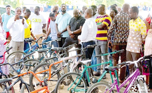 Michael Okyere Baafi, the MP for New Juaben South, has distributed bicycles to some constituents